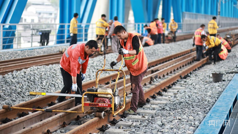 2022/10/31央广网重庆10月31日消息(记者白刁尹 通讯员苏志刚)近日,重庆铁路枢纽东环线明月峡长江特大桥上人影攒动、机器轰鸣,一片繁忙的景象,中国铁路成都局集团有限公司重庆工务段重庆东线路车间正在进行紧张的线路精调作...