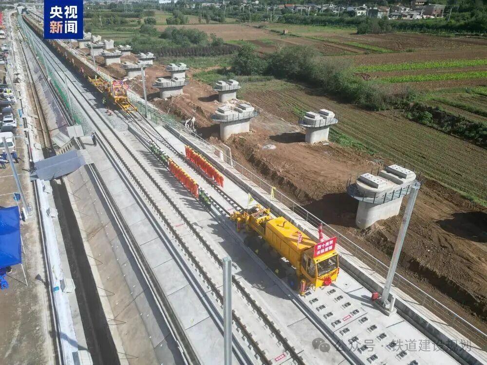 2025/09/09综合消息,9月8日,随着首对500米长钢轨平稳地铺设在西安东至蓝田区间的无砟轨道板上,西十高铁全线铺轨正式启动,标志着该项目正式进入最后的攻坚阶段。西十高铁穿越秦岭山脉,地质结构复杂,桥隧比高达95%,施工难...