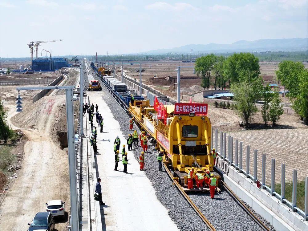 2024/04/22新华社讯:4月20日,位于山西省朔州市的集大原高铁贺家堡跨荣乌高速特大桥施工现场,随着首对500米长钢轨在铺轨机牵引下缓缓牵出、精准落位,集大原高铁开始进入铺轨施工阶段。集宁至大同至原平高速铁路北起内蒙古自...